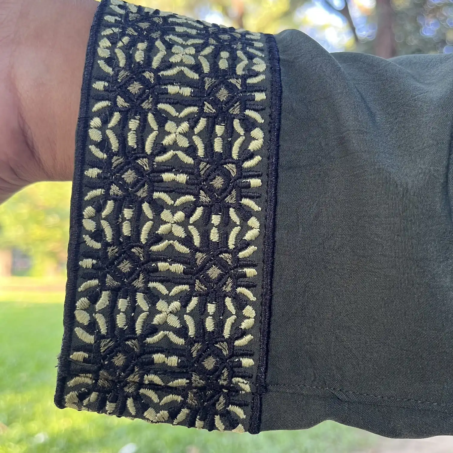 ডিজাইন: গলা ও হাতায় সূক্ষ্ম এমব্রয়ডারি কাজ
