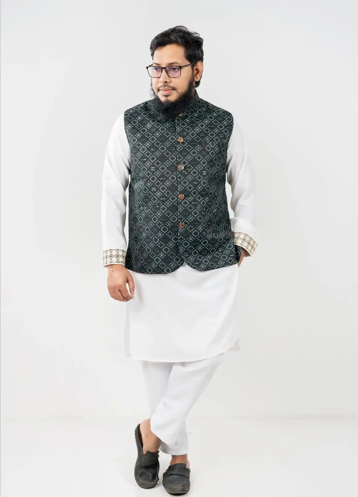 দারুণ ডিজাইনের বোতাম ও স্মার্ট কাটিংয়ের ফলে এটি যেকোনো পাঞ্জাবি বা শার্টের সঙ্গে সহজেই মানিয়ে যায়। বিয়ে, গায়েহলুদ, দাওয়াত, পার্টি কিংবা ফেস্টিভ অনুষ্ঠানে আলাদা করে নজর কাড়ার জন্য এই সিকোয়েন্স কটি একটি আদর্শ পছন্দ।