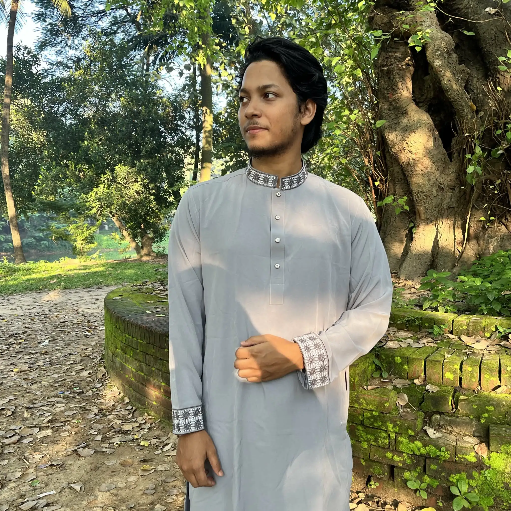এই প্রিমিয়াম অ্যাশ কালারের পাঞ্জাবিটি তৈরি করা হয়েছে উন্নতমানের চায়না স্টিচ ভাঙচুর কাপড় দিয়ে, যা আরামদায়ক, মসৃণ এবং দীর্ঘদিন ব্যবহার উপযোগী। গলা ও হাতার অংশে সূক্ষ্ম ও মানসম্মত এম্ব্রয়ডারি কাজ পোশাকটিকে দিয়েছে অভিজাত ও আকর্ষণীয় লুক। আধুনিক স্নেপ বাটন এবং নিখুঁত সেলাই ফিনিশিং এই পাঞ্জাবিটিকে উৎসব, দাওয়াত বা বিশেষ অনুষ্ঠানের জন্য একটি আদর্শ নির্বাচন করে তুলেছে। স্টাইল ও কমফোর্ট—দুটোর সমন্বয়ে এটি আপনার কালেকশনের একটি অবশ্যই থাকা পিস।